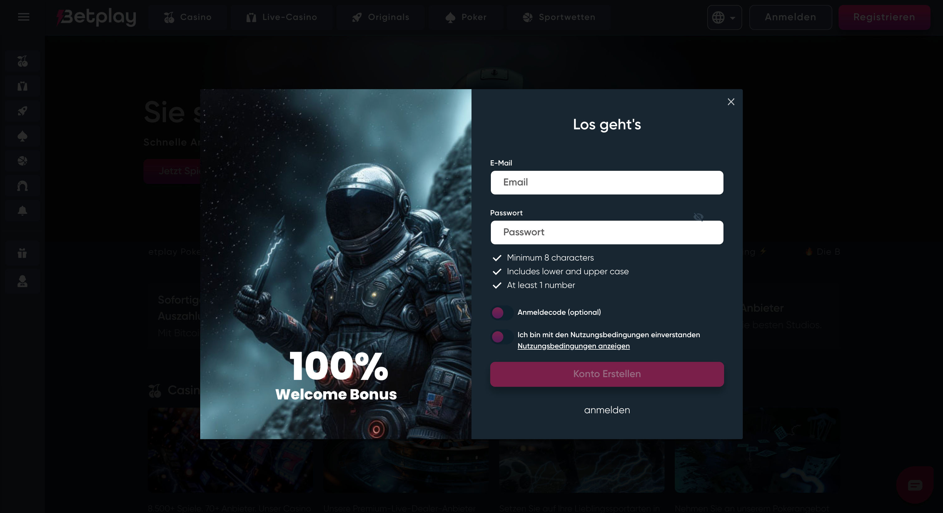 Betplay festigt seine Präsenz unter den besten USDT-Casinos, indem es Krypto-Nutzern eine saubere, reaktionsschnelle Schnittstelle mit umfangreichen Funktionen und Unterstützung für Tether-Zahlungen bietet. Mit einer Spielauswahl von mehr als 8000 Spielen wird es den Spielern nie an Auswahl mangeln, vor allem mit Anbietern wie Nolimit City und Evolution im Mix.