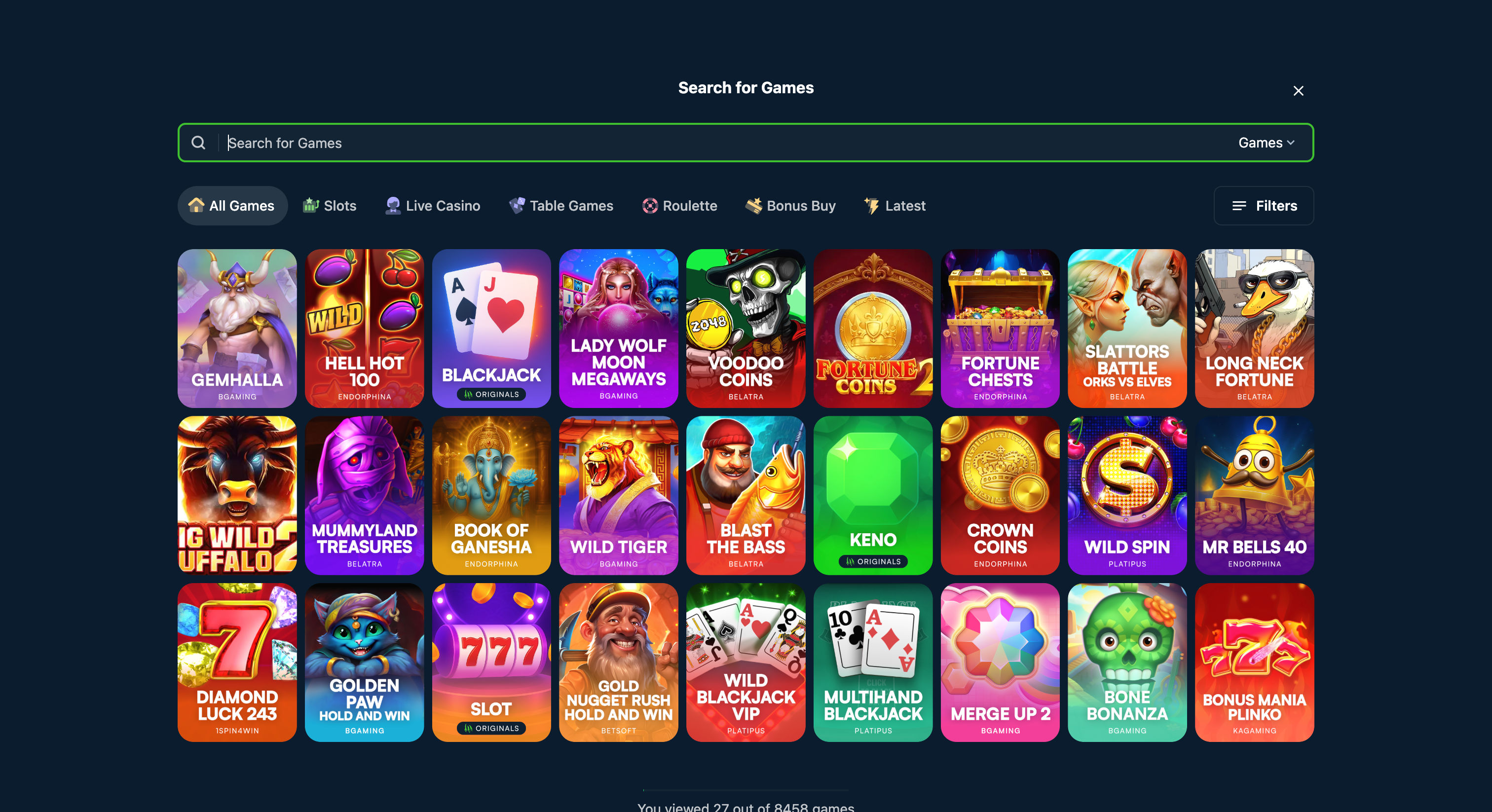 Mit diesen Anbietern im Rücken umfasst die Spielesammlung von Wild.io über 7.000 Spiele, darunter eine große Auswahl an Slots, Tischspielen und Live-Dealer-Optionen. Diese umfangreiche Sammlung positioniert Wild.io vorteilhaft im Vergleich zu anderen Krypto-Casinos, die möglicherweise nicht eine solche Vielfalt bieten.