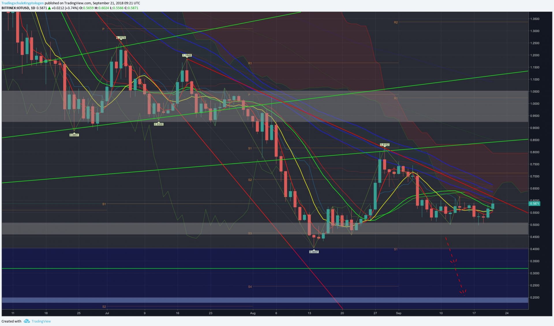 So lautete das Zitat aus der letzten IOTA Analyse aus KW37. Die 0,50 US-Dollar-Marke wurde seitens IOTA noch einmal getestet und seitdem kam auch hier eine Erholung, die 20 % Buchgewinn vorweisen konnte. Die laufende Aufwärtsbewegung gelangt nun an den kurzfristigen Abwärtstrend.
