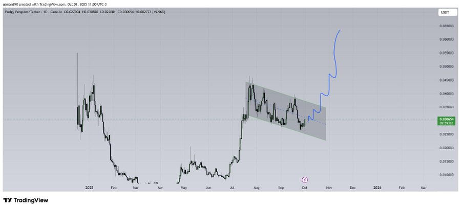 Laut Knights Analyse könnte $PENGU, wenn die Dynamik anhält, nicht nur die Marke von 0,040 $ testen, sondern in den kommenden Wochen auch in Richtung 0,050 $ und möglicherweise sogar 0,060 $ weiter steigen.