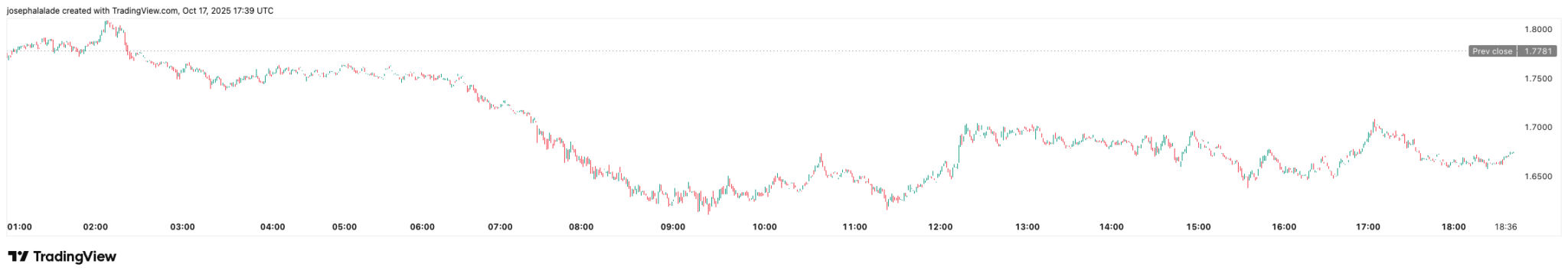 Dennoch ist eine Erholung von überverkauften Niveaus nicht auszuschließen. Das Volumen im Verhältnis zur Marktkapitalisierung ist nach wie vor hoch (ca. 15 %), was darauf hindeutet, dass der Markt aktiv ist und nicht tot. Eine Rückeroberung der 1,80 $-Marke würde die Stimmung schnell umkehren, aber ohne neue Katalysatoren oder TVL-Zuflüsse werden die Erholungen wahrscheinlich schnell abklingen.
