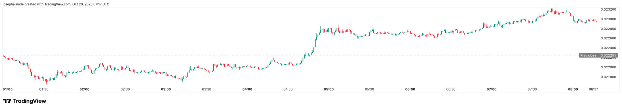 PENGU bewegt sich um 0,022 $, was einem Tagesanstieg von etwa 2 % entspricht, aber immer noch einen zweistelligen Rückgang in der letzten Woche und im letzten Monat bedeutet.
