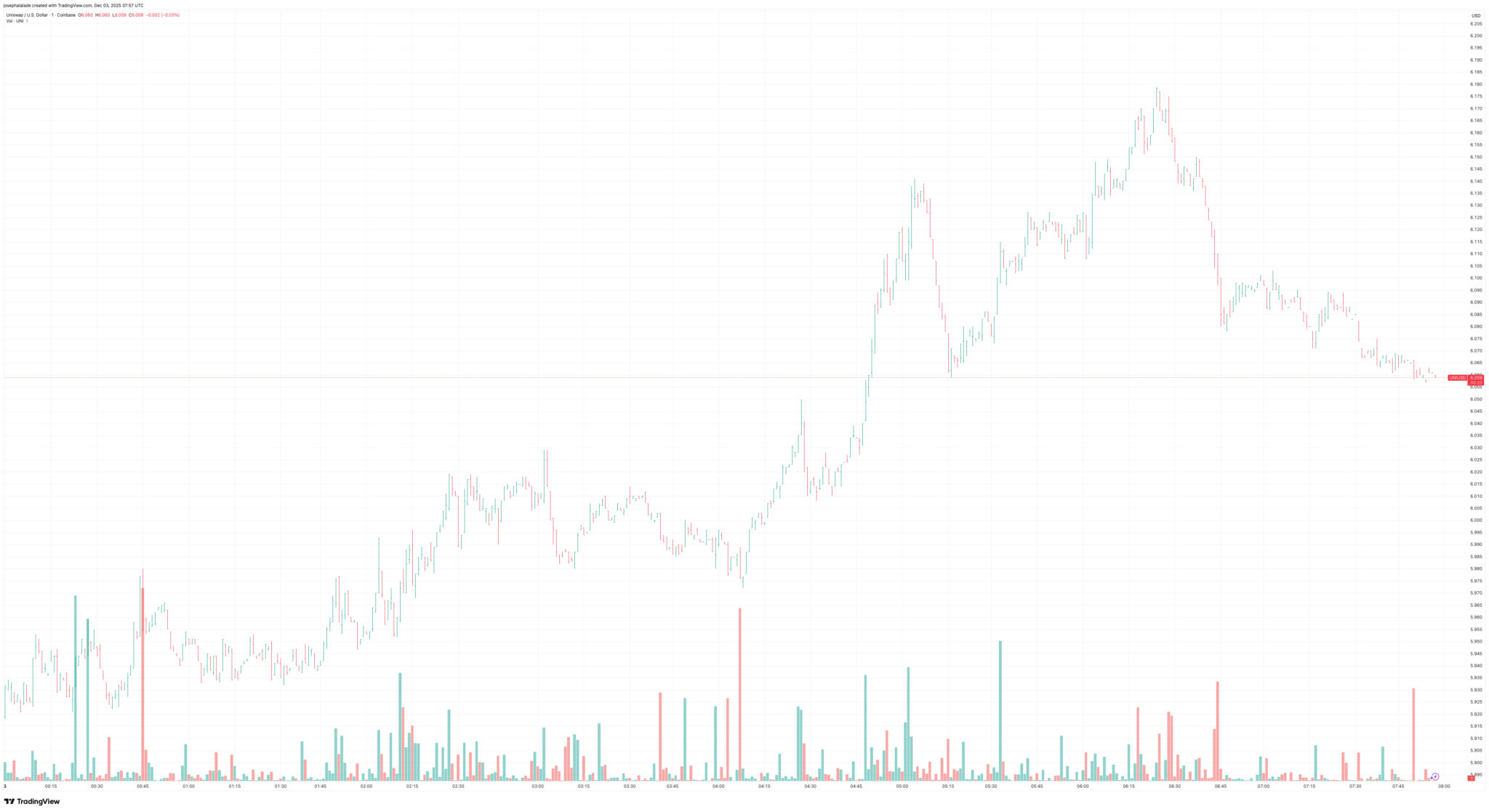 Wale kauften innerhalb von 48 Stunden vor dem 2. Dezember 0,8 Millionen UNI, etwa 4,98 Millionen Dollar. Diese Käufe fielen mit einem Wyckoff-ähnlichen Volumenerschöpfungsmuster zusammen, was darauf hindeutet, dass der Verkaufsdruck nachlassen könnte.