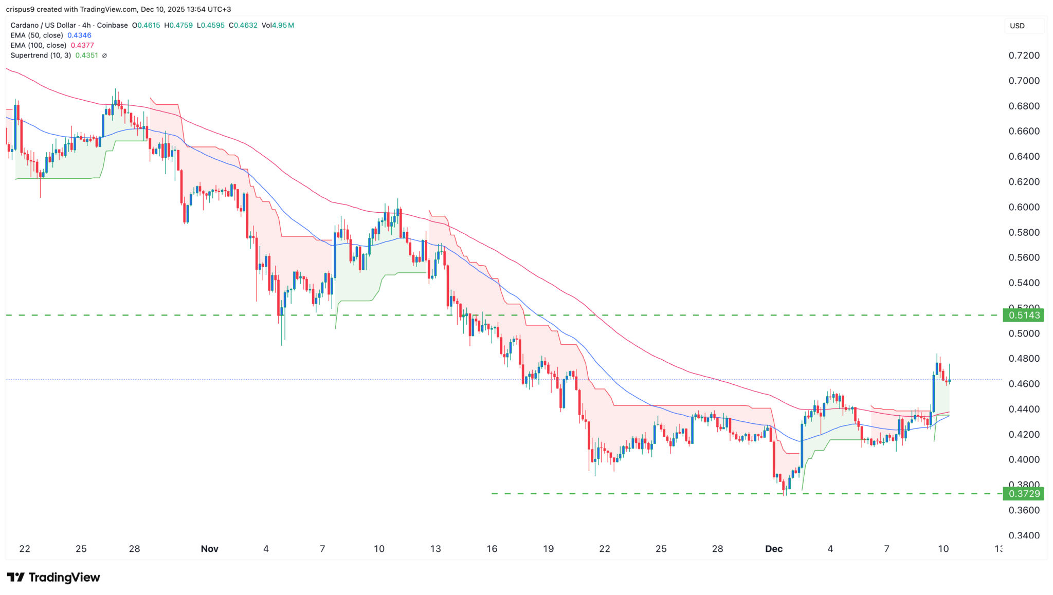 Der Cardano-Kurs blieb gestern, am 10. Dezember, stabil, während sich der kürzlich eingeführte NIGHT-Token nach seinem anfänglichen Sturzflug wieder erholte. Der ADA-Token stieg auf $0,46355 und damit um 30 % gegenüber seinem Tiefststand in diesem Monat. Wird der Token sein starkes Comeback diesen Monat fortsetzen?