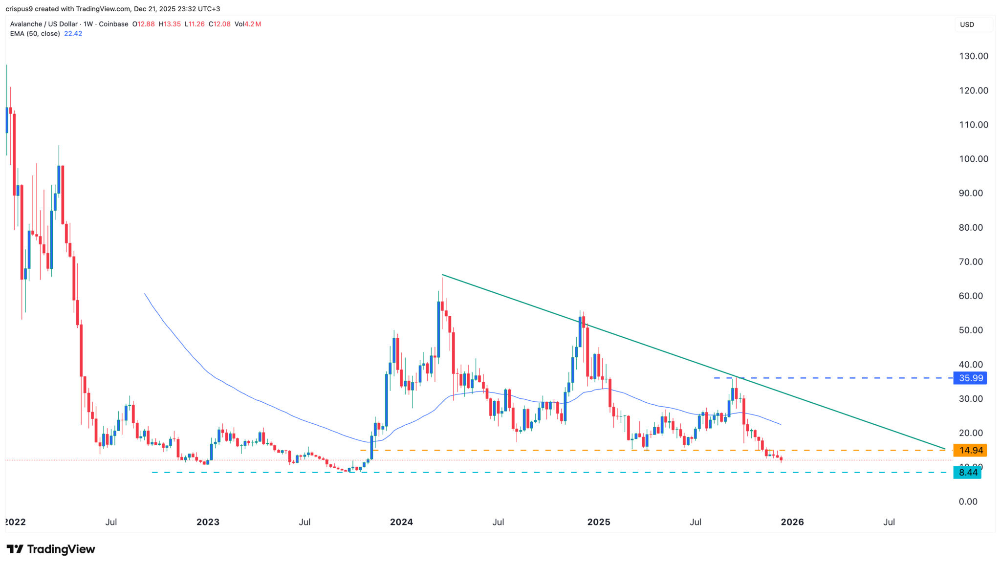 Der AVAX-Kurs hat seinen starken Abwärtstrend fortgesetzt und ist vom bisherigen Jahreshoch von ~$40 auf $12,0 gefallen. Er ist auf den niedrigsten Stand seit Oktober 2023 gefallen und gehört damit trotz wichtiger Katalysatoren zu den größten Nachzüglern auf dem Kryptomarkt.