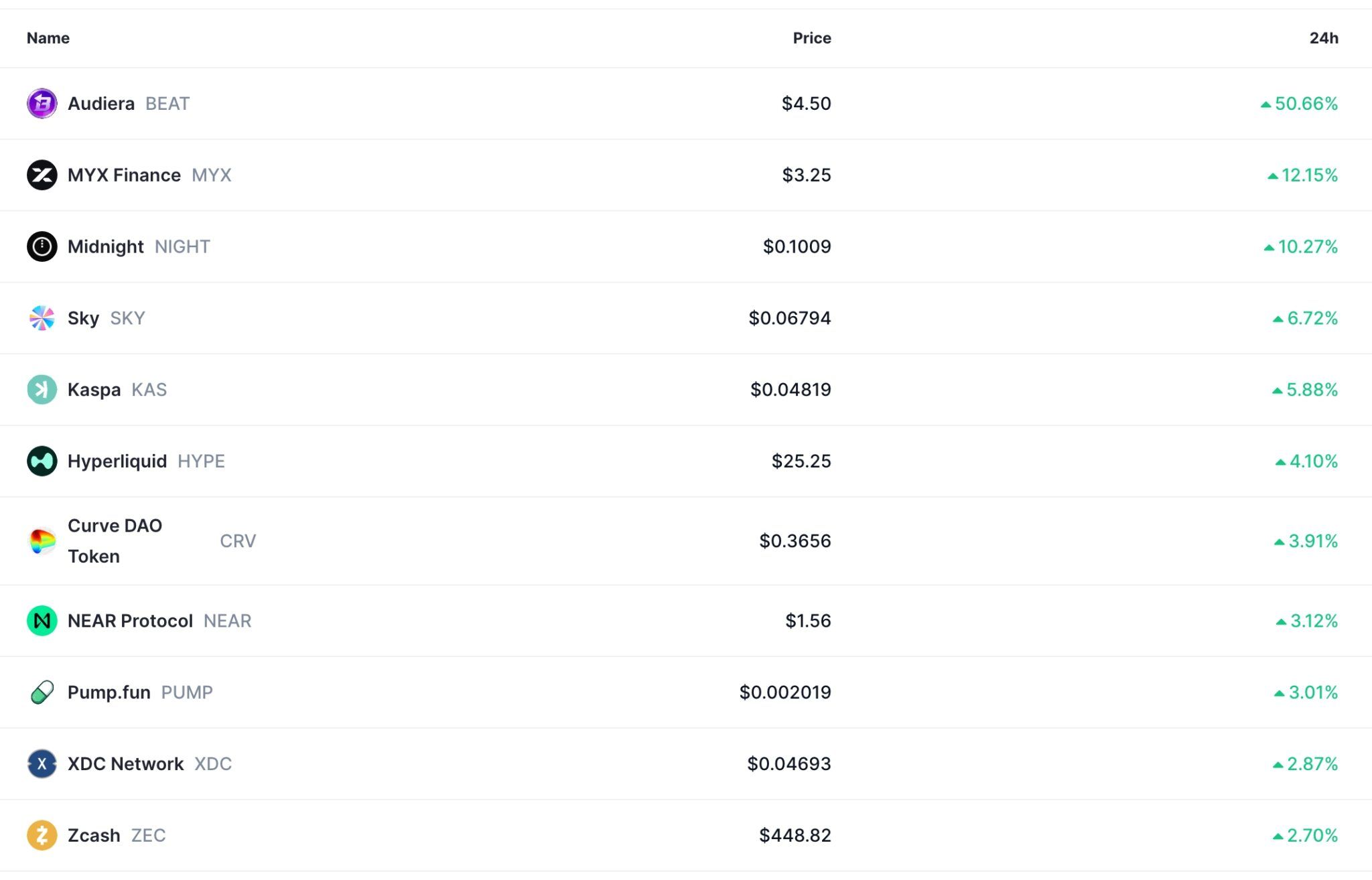 Zu den anderen Spitzenreitern dieser Kryptomarktrallye gehörten Token wie Avantis (AVNT), Audera (BEAT) und Meteora.