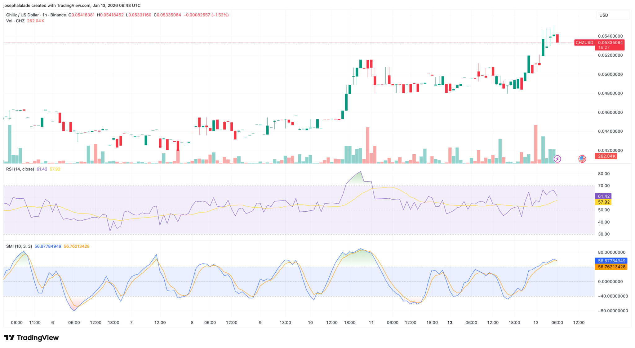 Der Chiliz-Kurs ist seit ein paar Tagen am Stück gestiegen und hat in den letzten 24 Stunden um etwa 9 % zugelegt, sodass er jetzt bei etwa 0,053 $ liegt. In der letzten Woche ist er um mehr als 18 % gestiegen und hat im letzten Monat 60 % zugelegt. Dadurch ist der Kurs jetzt in einem höheren Tagesbereich zwischen etwa 0,049 $ und 0,055 $.