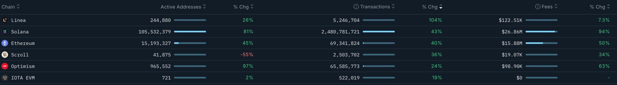 Ein weiterer bullischer Katalysator für den ETH-Preis ist, dass das Netzwerk trotz des anhaltenden Einbruchs des Kryptomarktes floriert. Von Nansen zusammengestellte Daten zeigen, dass die Anzahl der Transaktionen in den letzten 30 Tagen um 40 % auf fast 70 Millionen gestiegen ist. Mit diesem Wachstum ist es nach Linea und Solana, die um 110 % bzw. 43 % gewachsen sind, das drittschnellstwachsende Netzwerk in der Kryptoindustrie.
