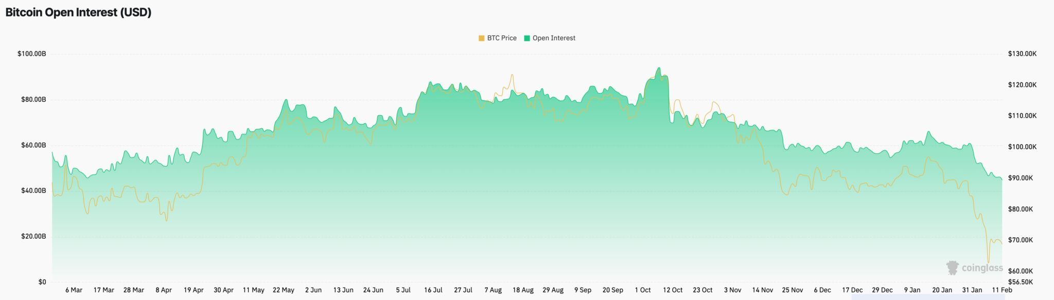 Bitcoin-Kurs rutscht ab, da das Open Interest an den Terminmärkten sinkt