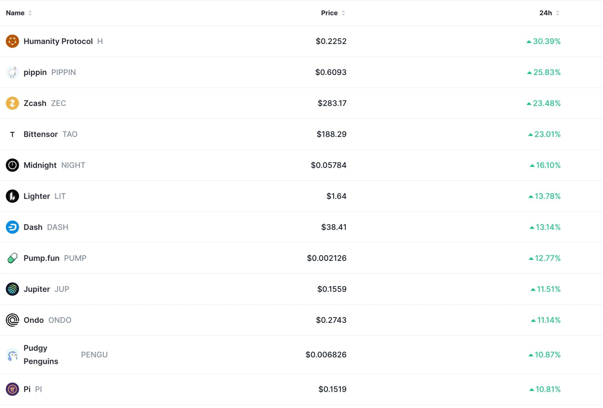 Heute gibt’s ‘ne Krypto-Rallye, bei der der Bitcoin-Kurs auf 68.000 Dollar steigt und Top-Altcoins wie Zcash (ZEC), Humanity Protocol (H), Lighter (LIT), Hedera (HBAR) und Pippin (PIPPIN) in den letzten 24 Stunden um über 10 % hochschießen.