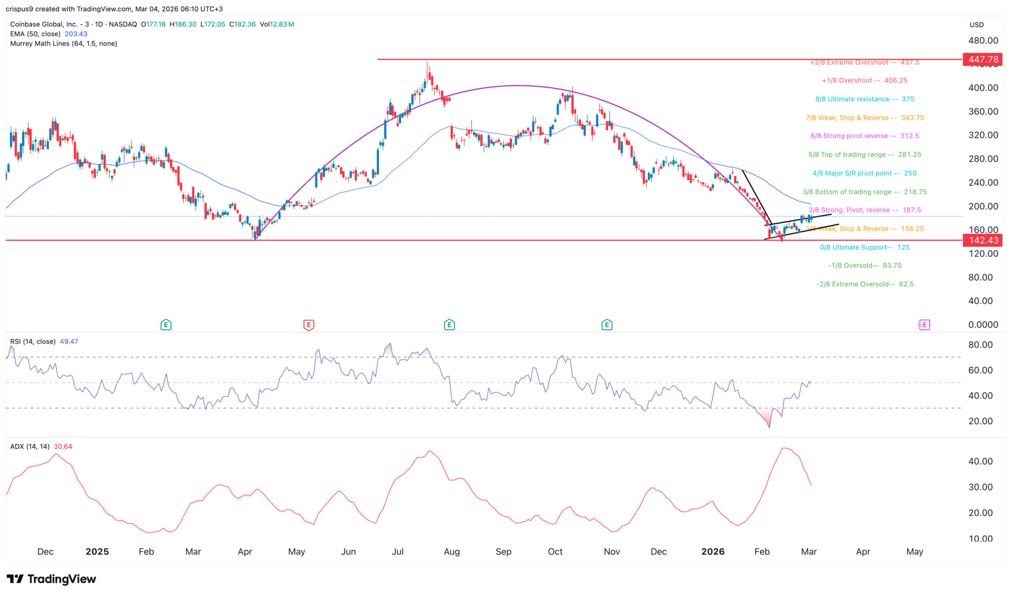 COIN-Aktienchart | Quelle: TradingViewCoinbase steht vor großen Risiken