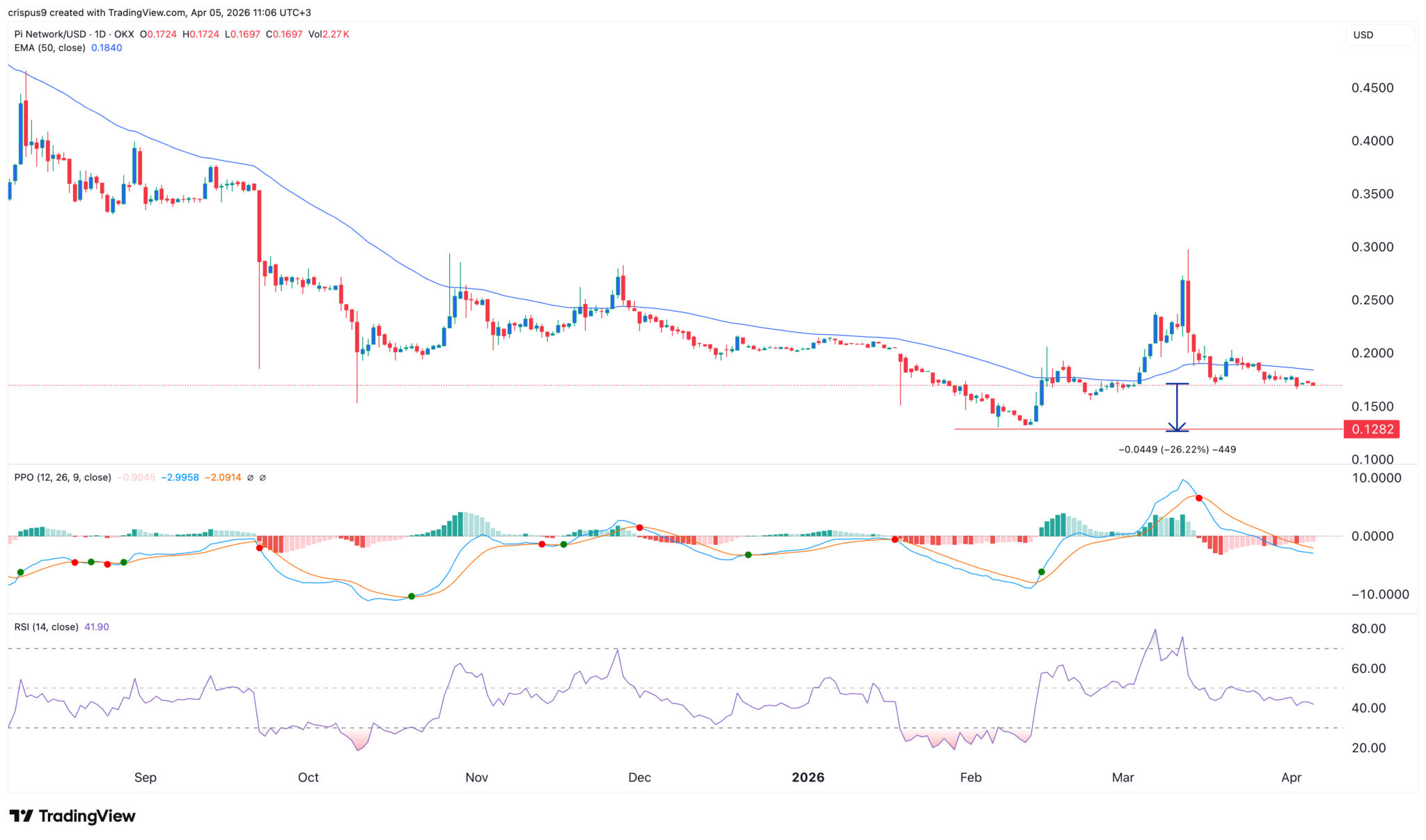 Der Kurs der Pi Network Coin hat die Dynamik verloren, die er im März dieses Jahres hatte, und ist in den letzten Wochen in eine Konsolidierungsphase übergegangen. Am Sonntag lag der Kurs bei 0,1697 $, was einem Rückgang von über 40 % gegenüber dem Höchststand im März entspricht.